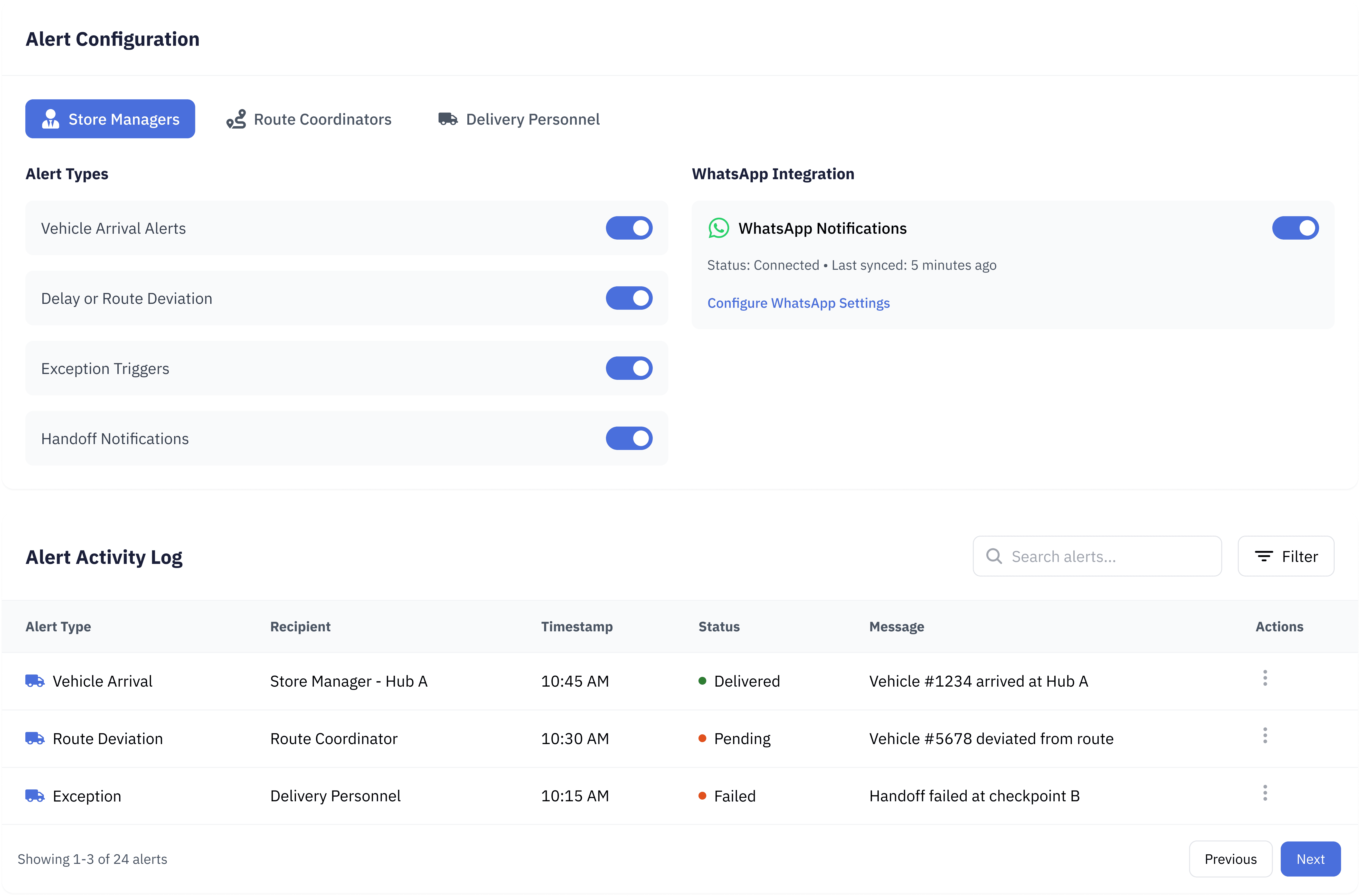 Monitor delays, route deviations, or miss-overs