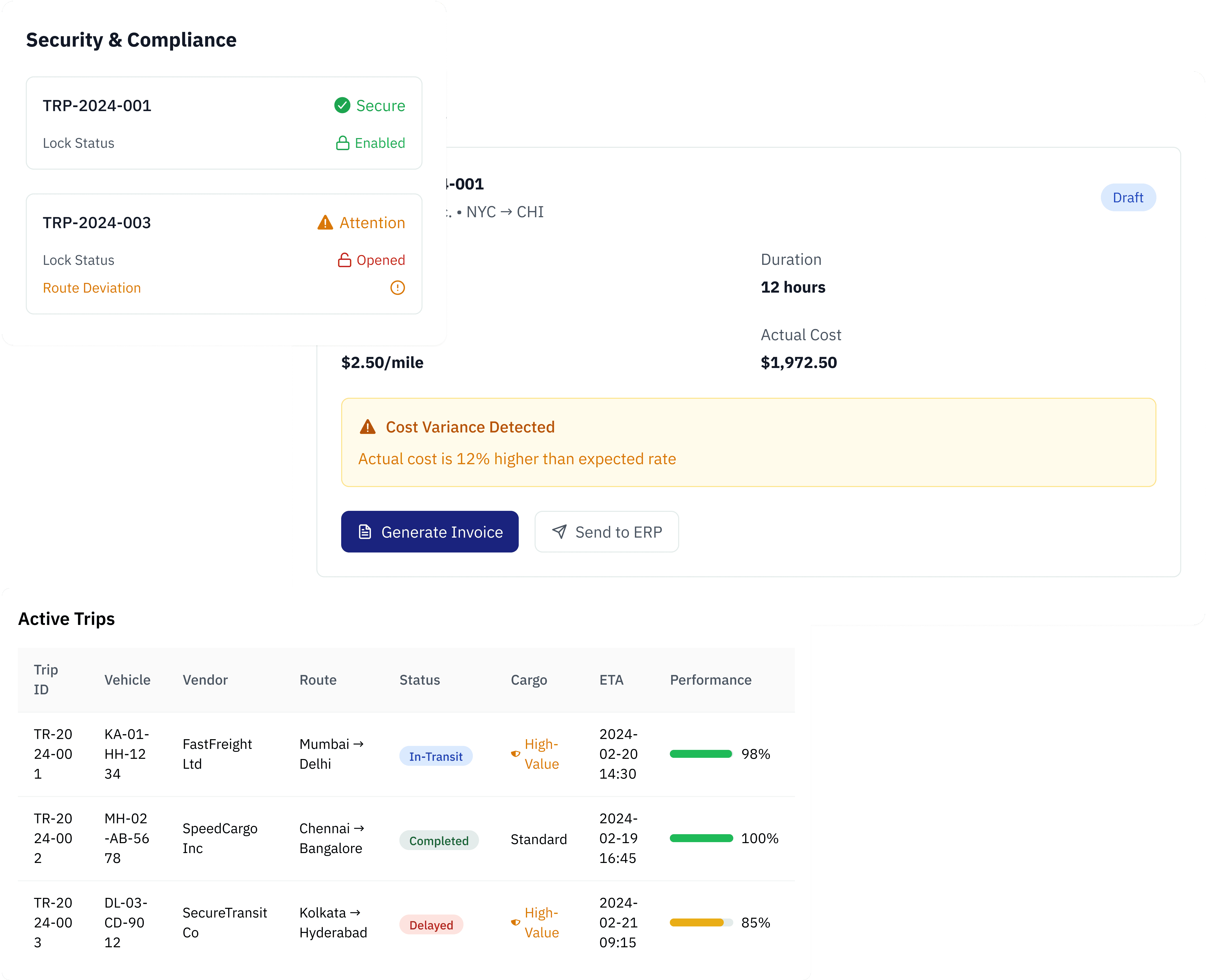 Track trips, routes, and vendor usage